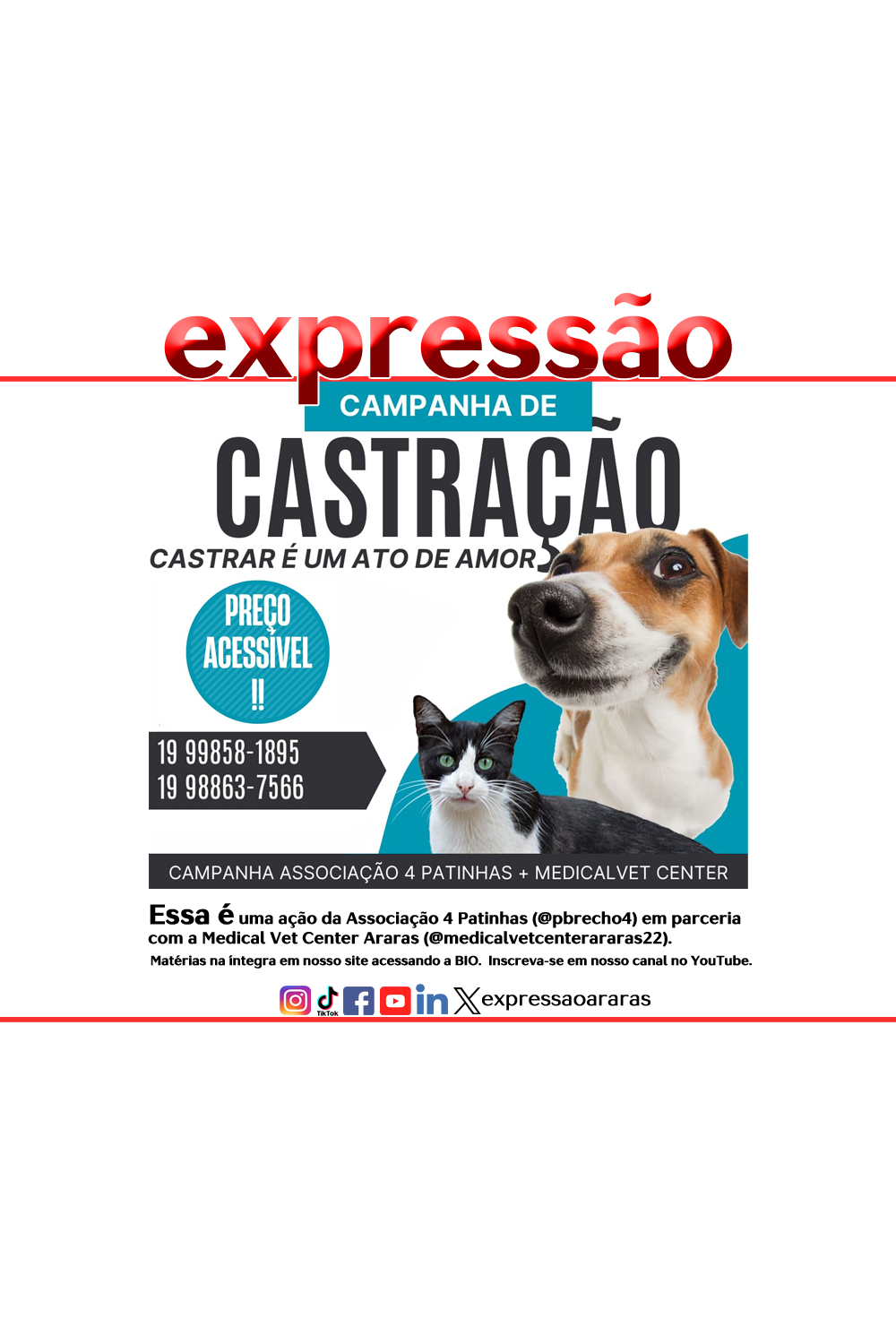 #saúdeanimal #pets #castração #amigofiel #expressãoararas #gentedeexpressao #sociedadeararense #araraseregião #NoticiasAraraseRegião